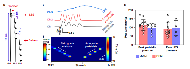 液态金属Liquid metal,代表了一类在室温或接近室温时为液态,且具有高导电性的新材料,可在柔性和可穿戴传感器中,实现一系列电子应用。尤其是,目前诊断胃肠动力障碍的测压成本高昂,并且受制于复杂和笨重的仪器。这种测压评估胃肠gastrointestinal(GI)道的张力和收缩模式,却又是诊断病症的必须步骤。