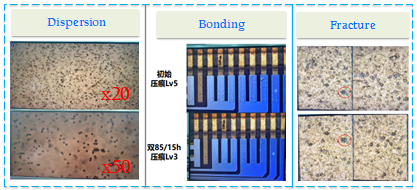 ACF验证:5um镀镍微球在ACF中分散性较好,初始压痕较好,粒子破口适中,粒子硬度、反弹率适中