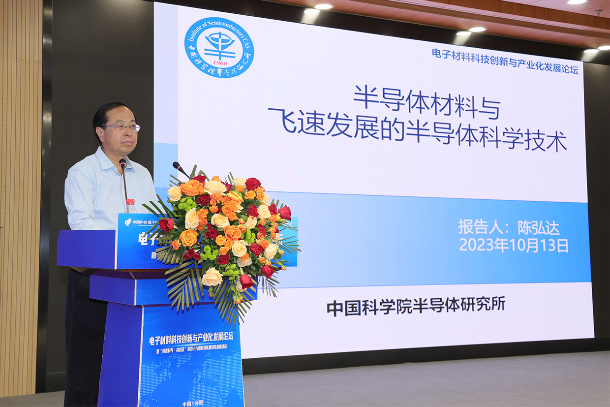 右图:中国科学院半导体所研究员、十三五战略性电子材料总体专家组组长 陈弘达 特邀报告