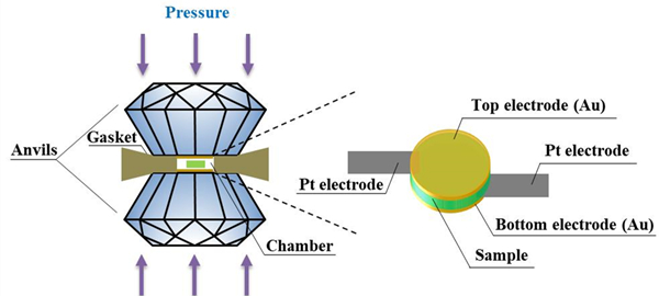 HfO2作为一种具有良好互补金属氧化物半导体兼容性的铁电材料,在半导体存储器、低功耗逻辑器件等领域具有广泛的应用前景。研究表明,HfO2在常压下没有铁电性,通过应变或掺杂等方式可诱导其转变为非1xbet(中国)对称的正交相,从而产生铁电性,这说明其铁电性与晶体结构密切相关。高压是调控材料结构、研究构效关系的有力手段。然而,目前对于HfO2在低压区是否存在结构相变仍存在争议,尤其是通过高压拉曼光谱和高压X射线衍射光谱两种实验技术得到的结论存在冲突,这阻碍了对HfO2的结构和物性的进一步理解。因此,研究团队引入了另一种高压实验技术——电输运,同时结合高压拉曼光谱实验和第一性原理计算,对HfO2在低压区的相变给出了明确解答。